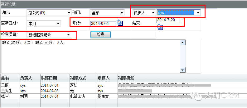 6、系统也支持每一位管理者通过软件定期或者不定期的检查坐席人员服务客户的情况、新增客户的情况、客户已经购买的情况。